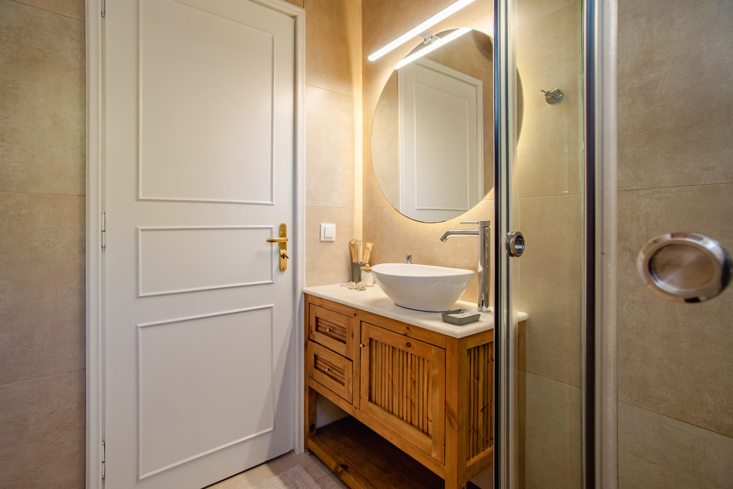 The sea is really next door, while there is also the picturesque path through the forest that leads to the village on foot!
